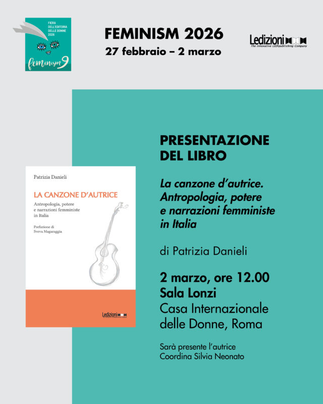 23 Feb Events La canzone d’autrice di Patrizia Danieli โ Presentazione a Roma il 2 marzo 2026 alle ore 12.00 23/02/2026 By admin 0 comments Vi invitiamo alla presentazione del volume โLa canzone dโautrice. Antropologia, potere e narrazioni femministe in...Continue reading